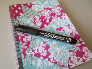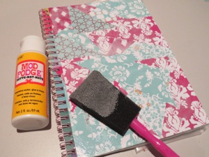 - Using foam brushes, coat a section of the notebook cover with matte Mod Podge. Apply triangles to cover and coat with Mod Podge. Repeat this process until entire cover is decorated. Seal cover with layer of Mod Podge and let dry overnight.