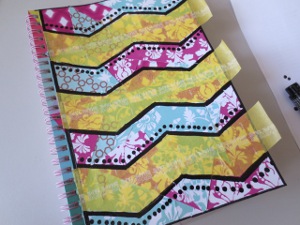 - Add lines to front cover with black marker, using zig zag tape as a guide. Let dry. Retrace lines to darken the pattern, then add dots, doodles, and designs to cover. Remove tape and let dry.