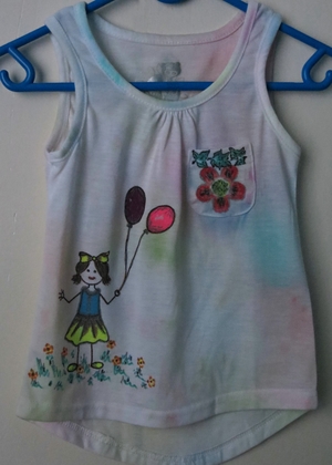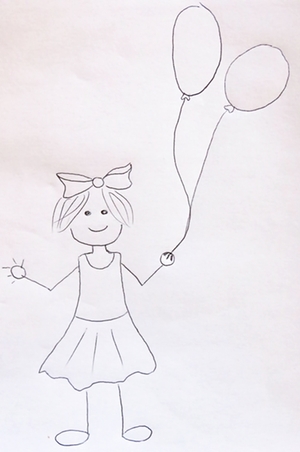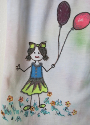 - Trace the outline of the stick woman with the black textile pen. Color the stick woman and the balloons with the pens.