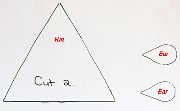 - Cut the hat from the pattern sheet and trace it onto the red felt. Repeat, so that you will have a front and back panel for the hat. Cut the two panels out.