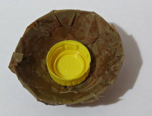 - Glue the 2.4” linen square on top of the bottle cap.
