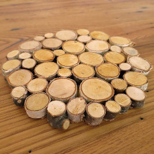 - Birch (or other tree) branch slices, about 1/4″ – 1/2″ high (You can use any height you want just make sure they are all close the the same height) and various widths (Mine were between 1/2″ and 1-1/4″). I used 41 slices to make a 7″ trivet.