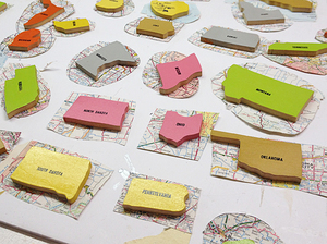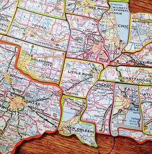 Is there such a thing as a sheet of magnet available at the craft store? Seems to me I have seen magnet strips sold in a roll. So here's my idea. You could use your old map of the United States, cut up all of the map, and glue the maps to the sheet magnet. I suppose you'd need an Xacto knife to do that.
