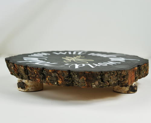 Adhere three small birch discs onto the bottom of your trivet with Cement for Wood & Metal making little feet.
