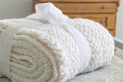 Imagine how cozy this blanket would be at the foot of the bed! It looks so cozy. The pattern sounds pretty easy too. The finished size looks big enough for a twin bed, but it would be easy to make the blanket a bit bigger or smaller. I'm putting this on my to-do list in a washable yarn.