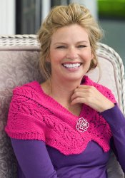 Make a beautiful shawl like this from Red Heart Yarn. The bright pink color is beautiful and always you to wear it any time of year. It's for a more experienced knitter. The flower embellishment is the perfect finishing touch.
