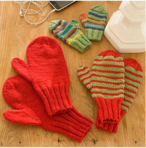 With some fun yarn colors, you can make Mittens for the Whole Family! This collection of handmade mittens from Red Heart Yarn makes a pair for dad, mom, and a little one! This set would be a great gift for a new family or a fun craft to do when the nights are cold!