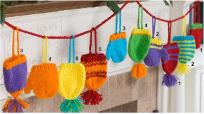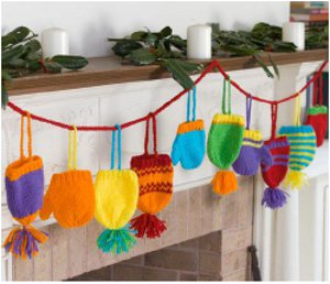 These Bright Knit Hats and Mittens Holiday decorations from Red Heart Yarn are great for decorating your mantel for Christmas. This project would also make great advent calendars! To make your own calendar, knit 24 mittens and fill with goodies!