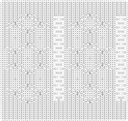 RND 25:*Yo, ssk, k1, k2tog, yo, (p1, 3/2 LTPC, p1,3/2 RTPC) 2 times, p1; repeat from * 3 more times.