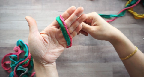 - 3 hanks (120 yards) of Silk Chiffon Ribbon