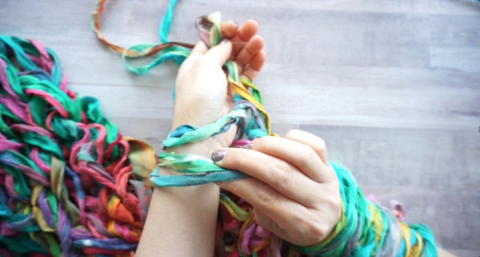 Learn how to arm knit a scarf with stunningly beautiful yarn and a helpful video tutorial! Get colorful with a vibrant new scarf made in minutes. If you've never tried arm knitting before, you're in for a treat. This is a fantastic and easy skill to learn for all ages. And it's so satisfying! You can make an arm knit scarf far more quickly than you can make a traditional knit version. Use a beautiful and colorful yarn to complete this project for a standout accessory that friends and family are sure to comment on. Be bold and have fun. This is a fantastic and helpful tutorial for beginners and expert arm knitters alike!