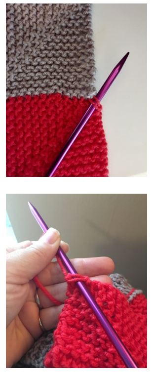 Holding the full needle in your left hand, place a marker in the Garter ridge to denote the right side.