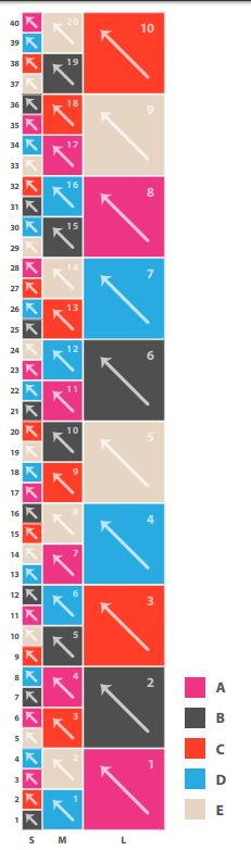 Work same as Small Squares 3 and 4 alternately, in the following color sequence: E, A, B, D, C, E, A, B, D, E, C, B, A, D, E, C, B, D, A, E, B, D, C, A, E, D, B, C, E, D, A, B, E, C, D, A .