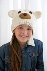 Using photograph as a guide, position snout at center front of hat, about 1¾" (4 cm) above lower edge. Whipstitch snout in place. Position nose on top of snout, centered over upper portion of snout, and whipstitch in place. Fold each ear in half across narrowest, center section and sew side edges together. Position ears on hat, 3" (8 cm) from top, on each side. Whipstitch ears in place. Position eyes above snout and whipstitch in place.