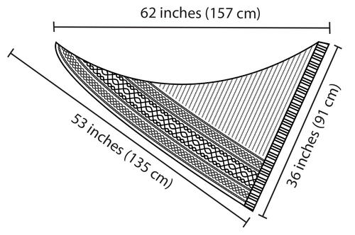 The Aspens Asymmetric Shawl conjures memories of long walks through a snow-covered forest and meandering stony paths alongside the river’s edge. A wide center panel shows off a beautiful and intriguing cable pattern. Two columns of simple honeycomb stitch sandwich the main cable, with long bands of slipped stitches surrounding it. The cable design slowly emerges from the narrow end of this asymmetric shawl and reveals its full beauty at the widest end. A simple rib stitch finishes off the edge. This pattern is charted and includes written instructions.