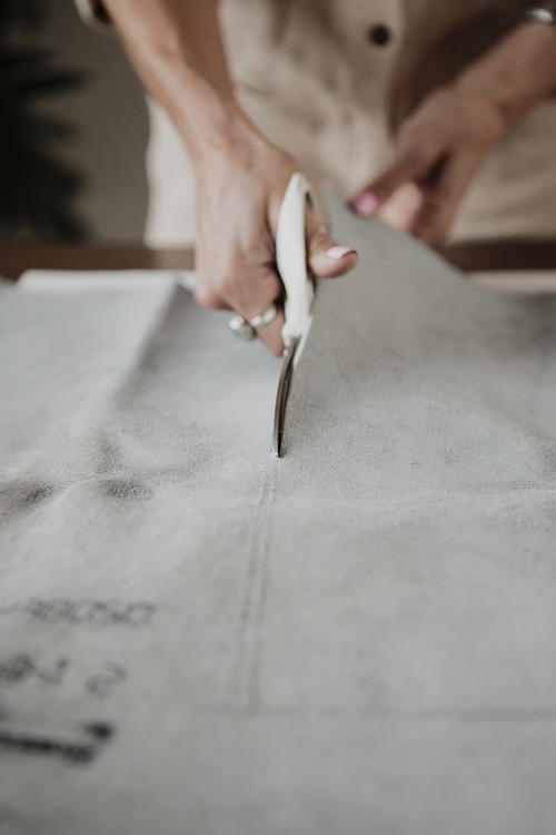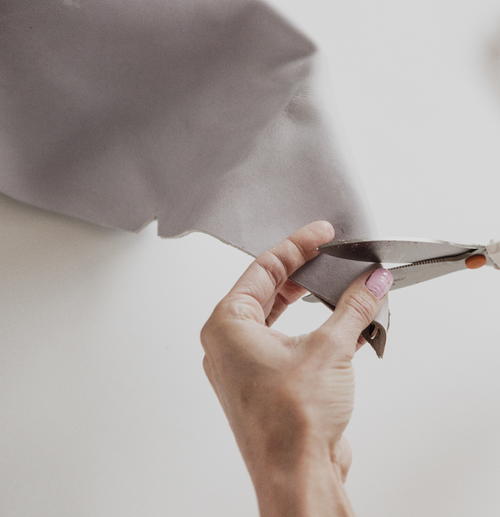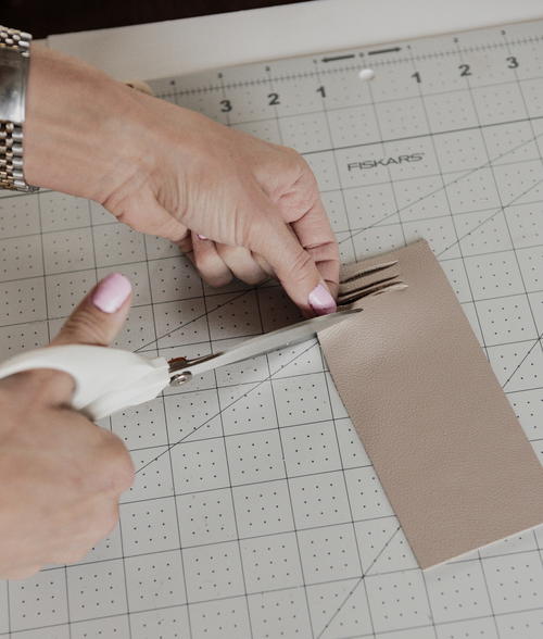 I used tools from the new DIY Precision tool line from Fiskars®. To start, choose between using either the Fiskars® PowerCut™ Shears, which are an amazing choice to power through thicker materials like leather, or the Fiskars® Heavy-duty Comfort Loop Rotary Cutter (65mm). If you’re a true beginner, I recommend the shears, otherwise feel free to try out the rotary which will give you even sharper and more precise cut lines for your leather bag.