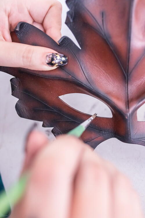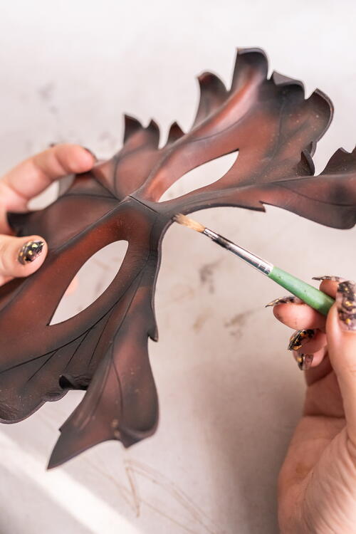 When the mask is completely dry, paint the outer margins and the edge of the opening for the eyes with black leather dye.