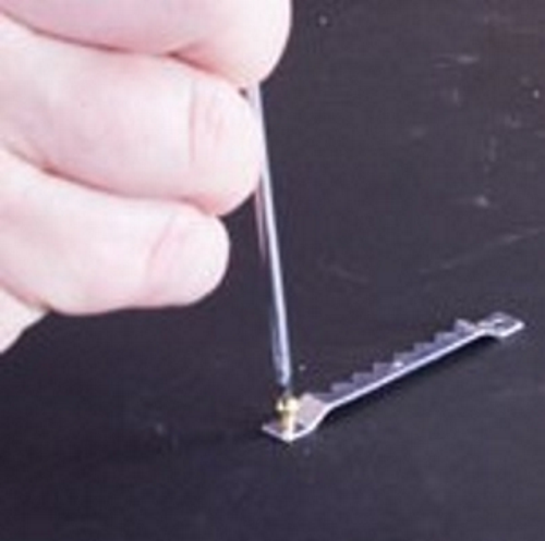 Adhere the Saw-Toothed Hanger Carefully turn over layer 5/6/7, taking care to support the battery pack. Attach the saw-toothed hanger with the screws provided. For extra holding power, put a dot of DAP Adhesive under the hanger before you screw it in place.