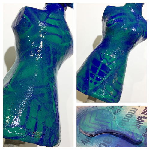 From the Designer: "I've had this papier-mach torso with wood accents lying around for more years than I can remember. I've painted her up with spray paints and stencils, embellished with handmade resin tropical flair and WINGS! I'm so happy with how this turned out! She is a beautiful addition to my creative workspace."