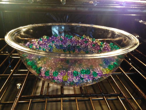 Place beads inside bowl, pushing to bottom and sides. The cooking spray makes them stick.