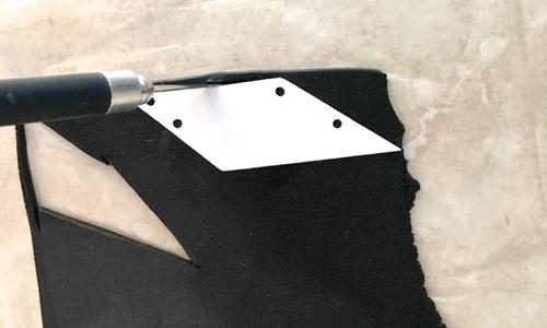 Cut out the marked holes with a 3mm hole cutter, piercing through both layers.