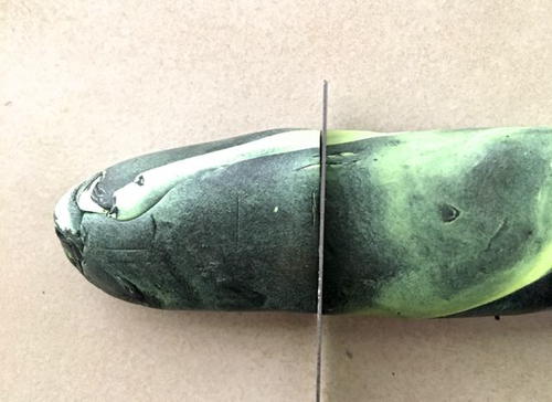 Twist the tubes together and roll them on the work surface with your hands to form one large tube. Twist it then roll it onto the work surface. Make sure there are no air pockets in the roll. If you feel any, push the roll in from the left and right sides and roll again. Twist once more then flatten slightly.