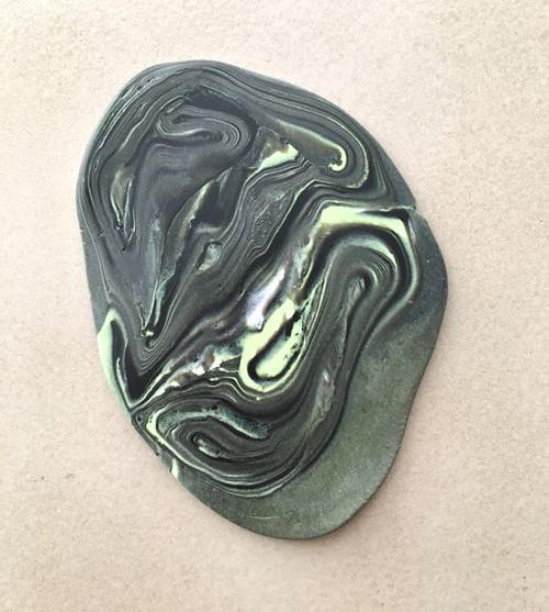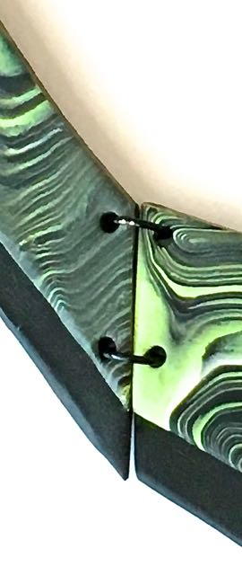 From the Designer: "Black, White and Pistachio mix together to form smooth matte beads in this contemporary clay necklace. I used Sculpey Souffle which results in an almost suede-like finish. Lightweight to wear, the six beads increase in size from two inches in the center and one inch on the ends. Jump rings link the beads in this custom design, with chain finishing off the sides. The color of this necklace is deep and rich and the texture just begs to be touched. Make this project and your friends will wonder if you are wearing a leather necklace."