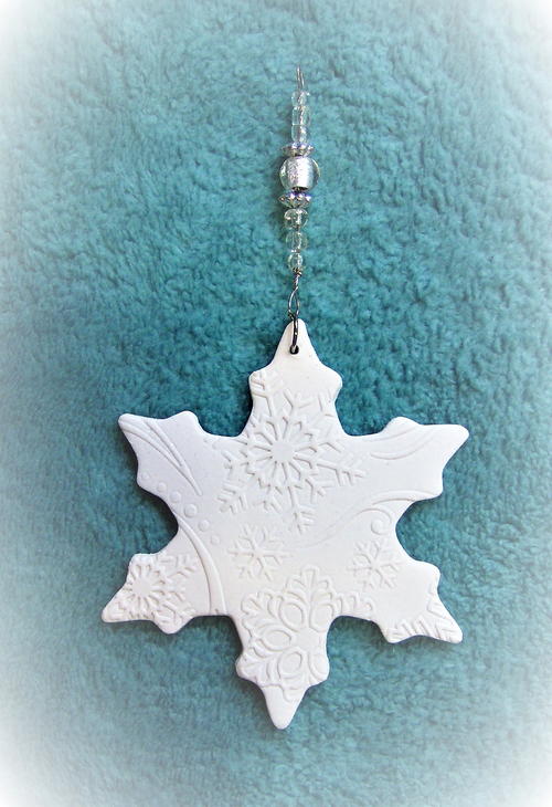 "If you have never worked with polymer clay before his is a great project to give it a whirl! If you can use a rolling pin and cookie cutter you can create these elegant and sparkly snowflake ornaments! These snowflakes are not only gorgeous ornaments for your tree but would also make pretty package tie-one as well. This project is not only quick and easy but low cost many them awesome gifts for teachers and friends! "