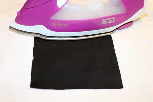 Preheat iron for 3 minutes at cotton setting, no steam. Iron black fabric square 1-2 minutes to release moisture.