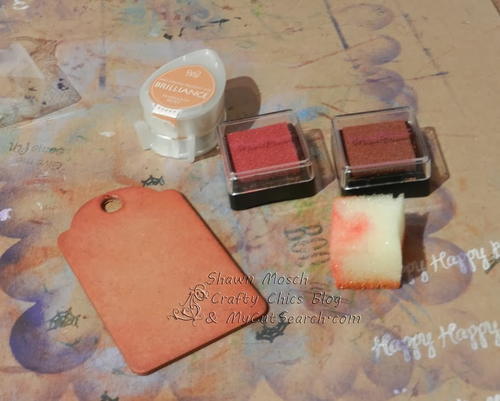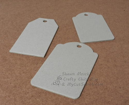 I started out with some plain chipboard tags in various shapes. I purchased this in a variety pack. You could use your Cricut to cut out tag shapes if you would like. If you don't know which Cricut cartridges have a tag shape on them, you can go to MyCutSearch.com and type in the word tag and you will find that there are a LOT to choose from!