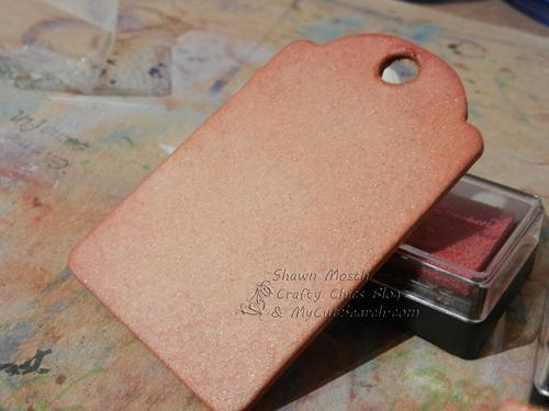 I also stamped the entire tag with a background stamp to add a little pattern to it. I did this in a golden brown . . . it does not show up in this photo . . . it was a very subtle background, but that was what I was going for.