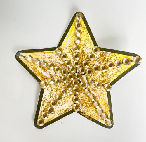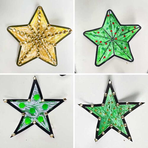 Have fun using craft stones to decorate your paper Christmas tree stars. Use craft stones of different colors and sizes.