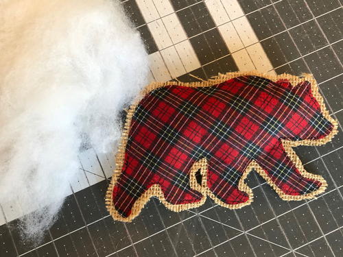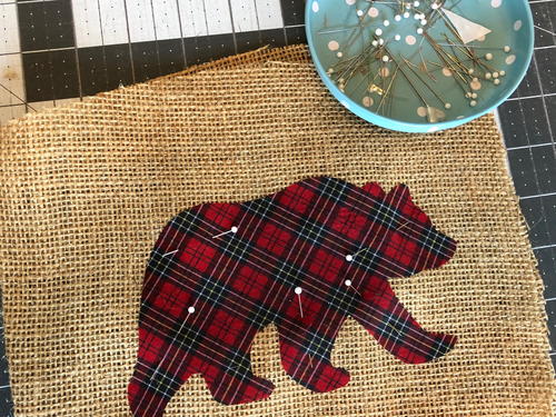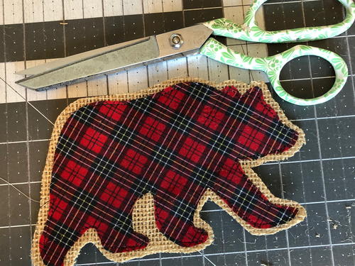 Cut out around bear, leaving 1/8” burlap border.