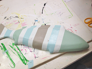 - Use tape to section off stripes along the body of the fish. Vary the widths of the stripes for visual interest.