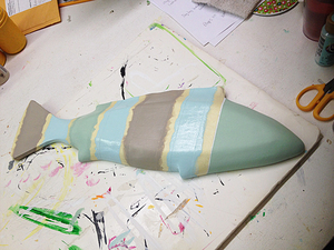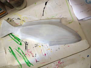 - Paint the surface of the fish with white paint. Apply a second coat and allow to dry.