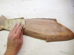 - Use sandpaper to distress the surface of the fish, giving it a weathered look. Dust off.