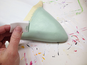 - Add a piece of masking tape to section off the head area. Use a cosmetic sponge to apply a thin coat of light sea green paint to the head. Use a paintbrush to add a second coat. Remove tape.