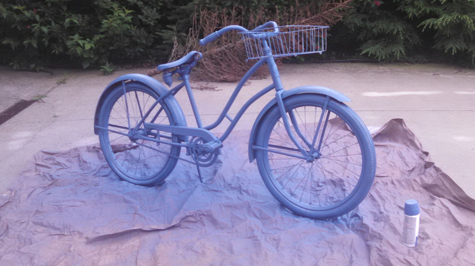 - Slowly spray undersides of wheel wells, chain, seat and all elements of the bike. Let dry between coats until entire piece is covered.