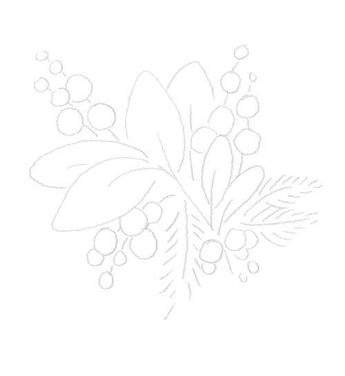 On your watercolor paper, trace or lightly sketch the holly in pencil.
