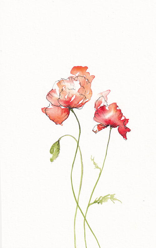 To many, the poppy symbolizes remembrance and is used around the globe to honor lost soldiers. But what does the poppy mean to you? It might be completely different. To me, the poppy brings back memories of my childhood vacations. When we traveled around Southern France as kids, my mom’s face always lit up when we drove past the glowing poppy fields, and that has made me love the dancing poppies even more. In this step-by-step project, I’ll introduce you to another approach to line and wash, which is to wash first. Let’s dive in.