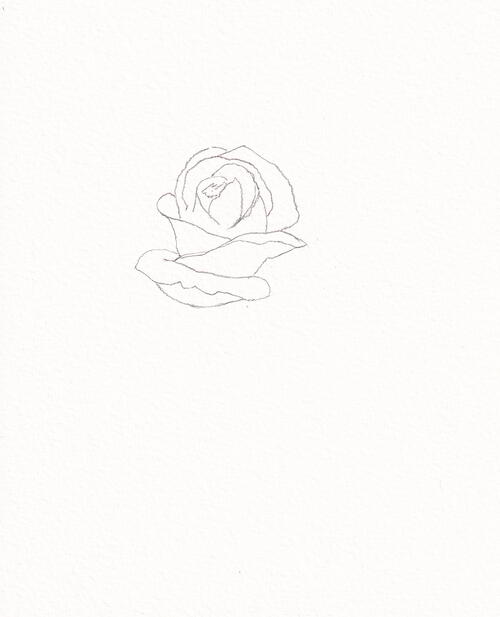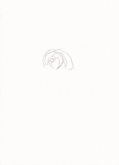This flower can be a bit tricky, so I’m showing a few more steps in this first sketch. Begin by drawing out the middle with a pencil. Add a few lines wrapped by a C-shaped line.