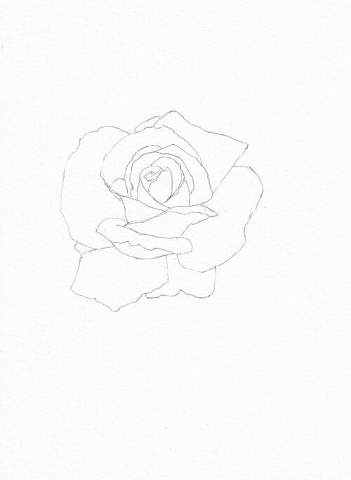 Take the 01 fineliner and draw a rough outline following the pencil lines beneath. Leave the outer edge of the petals, the stem and leaves without ink.