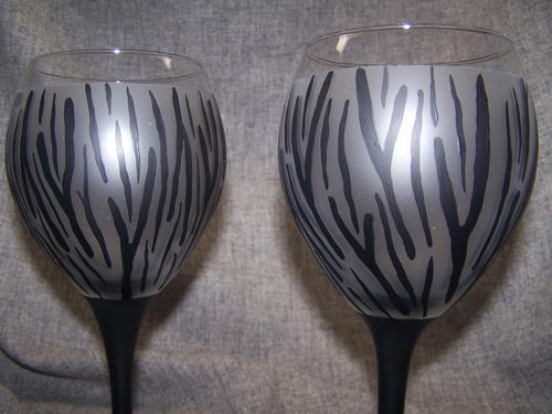 Load the short flat end of the cosmetic sponge with a small amount of White Frost Enamel paint and stipple onto the bowl of the wine glass (or recycled jar piece if you choose to practice). Keep a wet edge and work systematically to cover the entire bowl as evenly as possible. Use can use a clean side of the sponge to gently tap over wet areas to soften the look. For best results do not apply additional coats. The finished effect will be a semi transparent frosted look. When dry carefully remove tape. Use rubbing alcohol to remove fingerprints. Bake the glasses according to the instructions on the label.