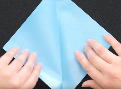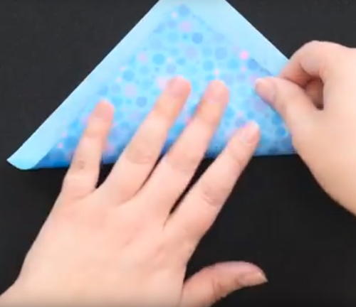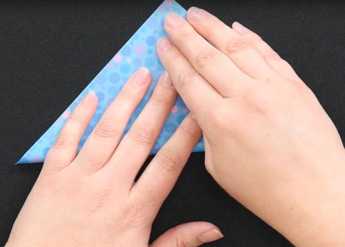 Angle paper wrong side down in front of you so it is a diamond shape. Take the bottom corner and fold up to create a triangle. Crease the fold with your fingernail or bone folder to create a crisp fold.