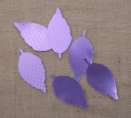 Cut three Starstruck Lavender and three Glossy Lavender/Gold leaves using the die and die cutter. Trim stems from leaves.