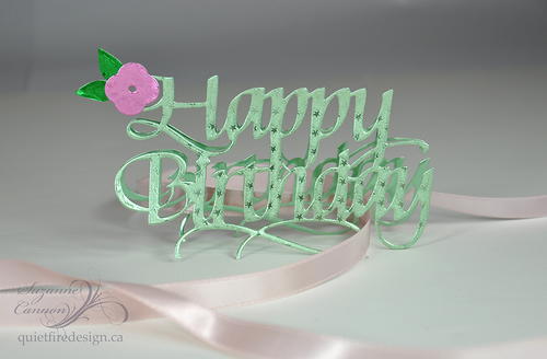 Stand Happy Birthday on a flat surface. If it’s not straight, carefully trim off the bottoms of the flourishes till the word sits straight. Refer to the photo.