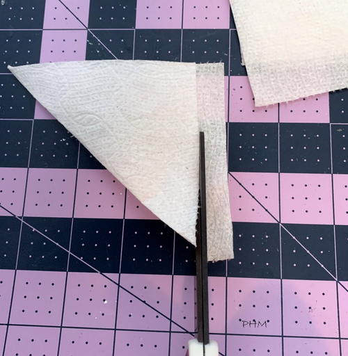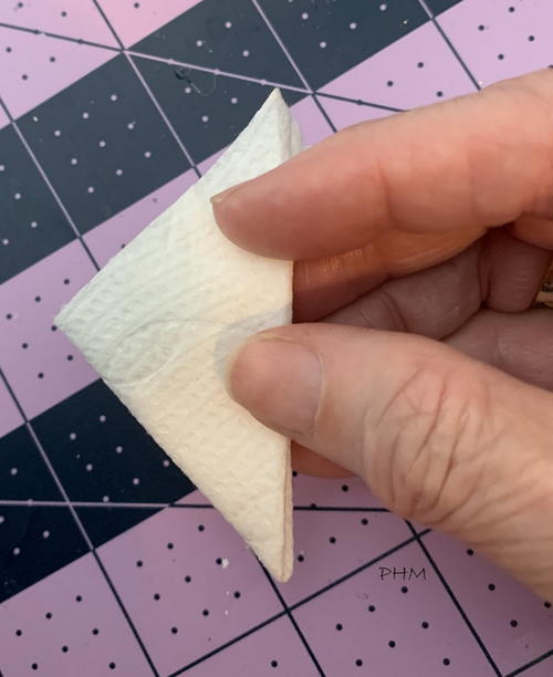 Then fold again creating another triangle, and fold one more time, making sure to line up the edges evenly and smoothing the paper at the fold.