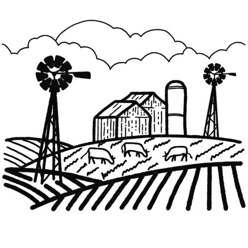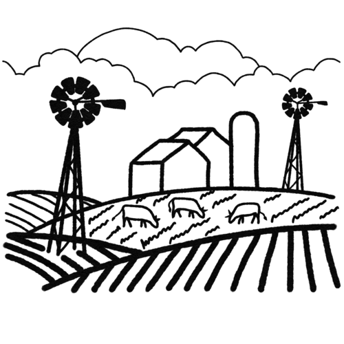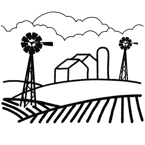 Create a lovely rural landscape featuring windmills, cattle, and a barn. You'll use pens in several thicknesses to achieve depth and breadth of detail.