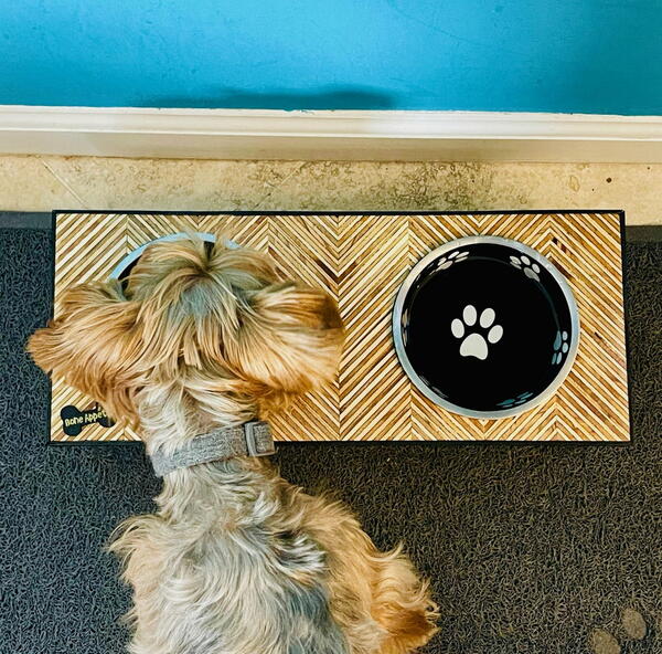 Is your dog's feeding station a bit of an eyesore? This DIY Dog Bowl Stand will have it fixed up and looking fabulous in no time! This simple tutorial takes boring plywood and turns it into an amazing chevron food bowl holder. These lifted feeding dishes are also in a better position for your pet. If you have a tall dog who is always bending down to eat, these elevated dishes could help to take some of the stress of their back. Dishes like these also keep the dishes from sliding around and scratching your floor!