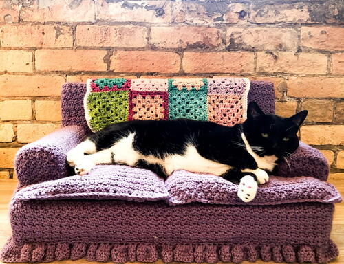 Make the retro Red Heart crochet kitty couch with our full free pattern!
